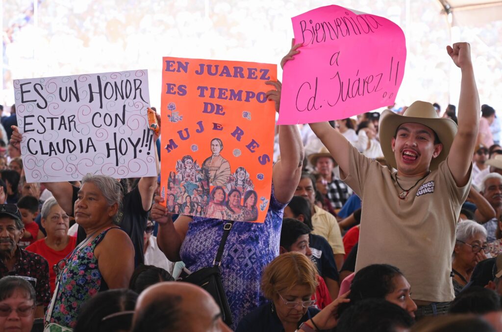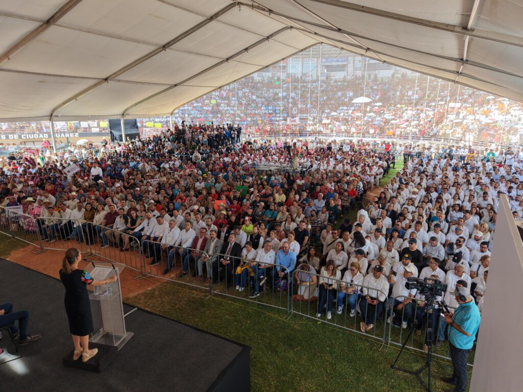 “Hoy que estamos cerca de la frontera, díganle a sus familiares —que estoy segura que todos tienen familiares del otro lado de la frontera— que estamos con ellos, que los cuidamos, que se acerquen a los Consulados. Estamos destinando recursos a los Consulados para que nuestras paisanas y paisanos siempre tengan el apoyo de su gobierno”, comentó.