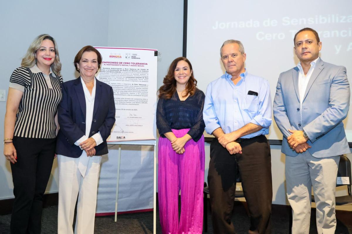Hermosillo, Sonora; 8 de octubre de 2025.- En cumplimiento con la visión del gobernador Alfonso Durazo Montaño, el Gobierno de Sonora, a través de la Secretaría Anticorrupción y Buen Gobierno, reafirmó su compromiso con la construcción de entornos laborales seguros y libres de violencia mediante la firma del Pronunciamiento de Cero Tolerancia al Hostigamiento y Acoso Sexual.