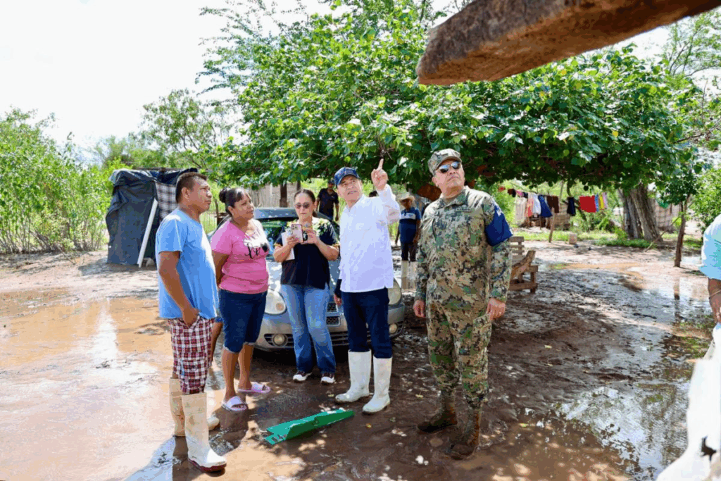 Guaymas, Sonora; 13 de octubre de 2025.- Para garantizar atención y apoyo a las familias que resultaron afectadas por acumulación de agua en sus viviendas, tras el paso por Sonora de la tormenta tropical Raymond, el gobernador Alfonso Durazo Montaño supervisó las comunidades cercanas a Guaymas y evaluó las necesidades urgentes en la zona, destacando que no se registraron pérdidas humanas.