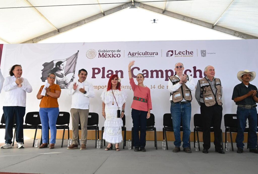 Champotón, Campeche, 14 de noviembre de 2025.- Desde Champotón, en cumplimiento a un compromiso de campaña, la Presidenta de México, Claudia Sheinbaum, encabezó el arranque del Plan Campeche, el cual a través de una inversión histórica de mil 238 millones de pesos (mdp), beneficiará a 7 mil 881 productoras y productores de pequeña escala de leche, arroz y carne, con el objetivo de impulsar al campo, el empleo rural y fortalecer la soberanía alimentaria.