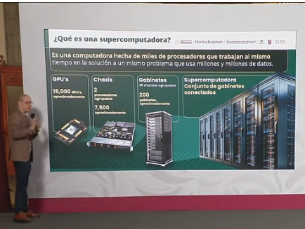 El director de la Agencia de Transformación Digital y Telecomunicaciones, José Peña Merino, contó el origen del nombre: Coatlicue, “la energía total”, la diosa más poderosa de la mitología mexica. Y detrás del nombre, un cuerpo titánico: alrededor de 16 mil GPU’s, unos 7,500 chasis y cerca de 200 gabinetes ensamblados como un enorme corazón tecnológico.