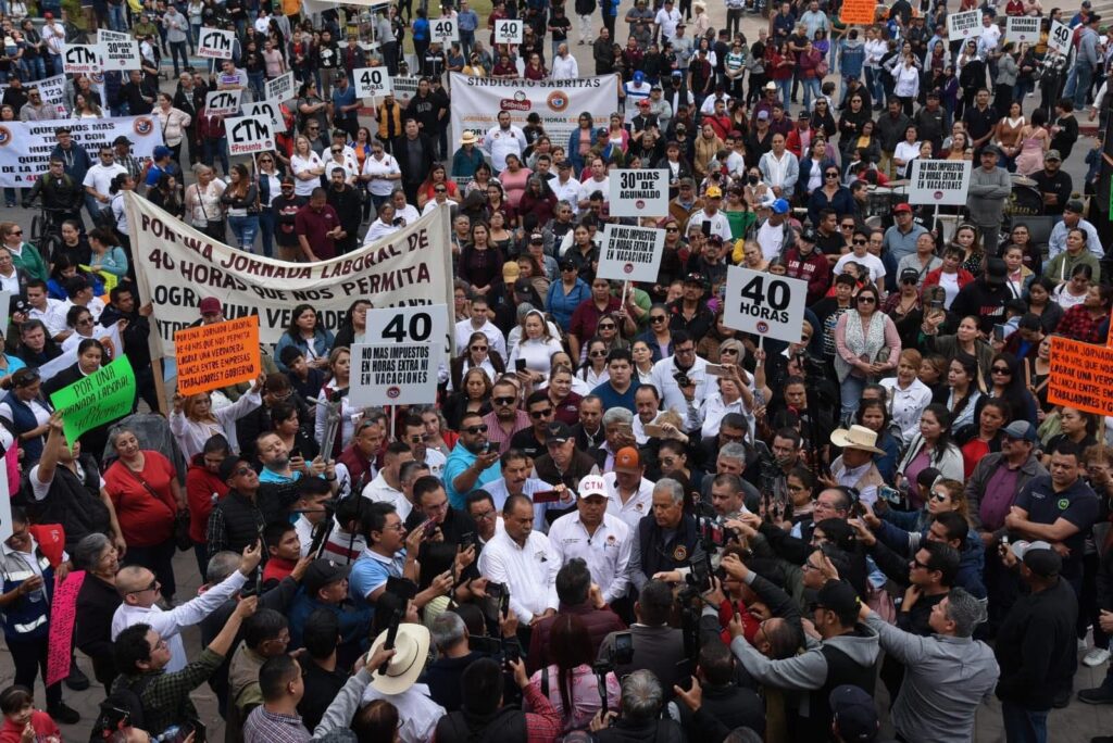 En cuánto a la reducción gradual de la jornada laboral, nos parece un logro extraordinario, también con el acuerdo de los sectores empresarial, obrero y gobierno, para que en enero de 2027, la jornada sea de 46 horas, el siguiente año de 44, luego 42, y en enero del año 2030, iniciará en definitiva la jornada laboral de 40 horas.