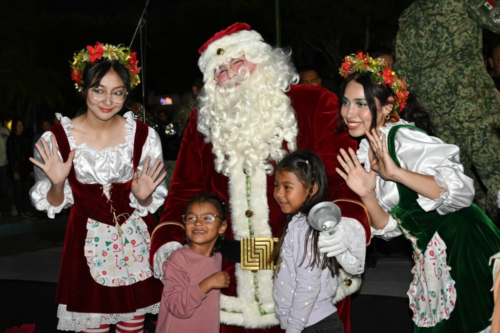El evento estuvo encabezado por el Presidente Municipal, Javier Lamarque y su esposa, la Dra. Martha Patricia Patiño Fierro, Presidenta del Voluntariado de DIF Cajeme, quienes acompañados por su familia, dieron la bienvenida a las familias cajemenses, la celebración también contó con la presencia de niñas y niños caracterizados de Santa y duendes, quienes aportaron un toque tierno y festivo al ambiente.