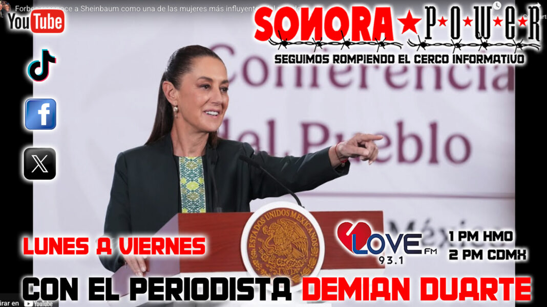 Inicio Sonora Power en Video Forbes reconoce a Sheinbaum como una de las mujeres más influyentes del...Sonora Power en VideoForbes reconoce a Sheinbaum como una de las mujeres más influyentes del mundoPor Editor Plus - 10 de diciembre de 2025540FacebookTwitterWhatsAppCopy URL Artículos relacionadosMás del autorHabrá Plan B para la reforma electoral; alcaldes de Sonora logran acuerdos con la presidentaSonora desde la CDMX #80 | ¿Reforma político-electoral? Esta es la propuestaSólidos resultados la estrategia de seguridad de Sheinbaum | Panorama Político de Sonora, BC y CHMorena afina estrategia y objetivos para conquistar el 27; Sheinbaum responde a Trump, menos armas82% de los mexicanos aprueban la reforma electoral de la presidenta Claudia SheinbaumDEJA UNA RESPUESTA Cancelar respuestaPor favor ingrese su comentario! Por favor ingrese su nombre aquí ¡Has introducido una dirección de correo electrónico incorrecta!Por favor ingrese su dirección de correo electrónico aquí Guardar mi nombre, correo electrónico y sitio web en este navegador la próxima vez que comente. Δ