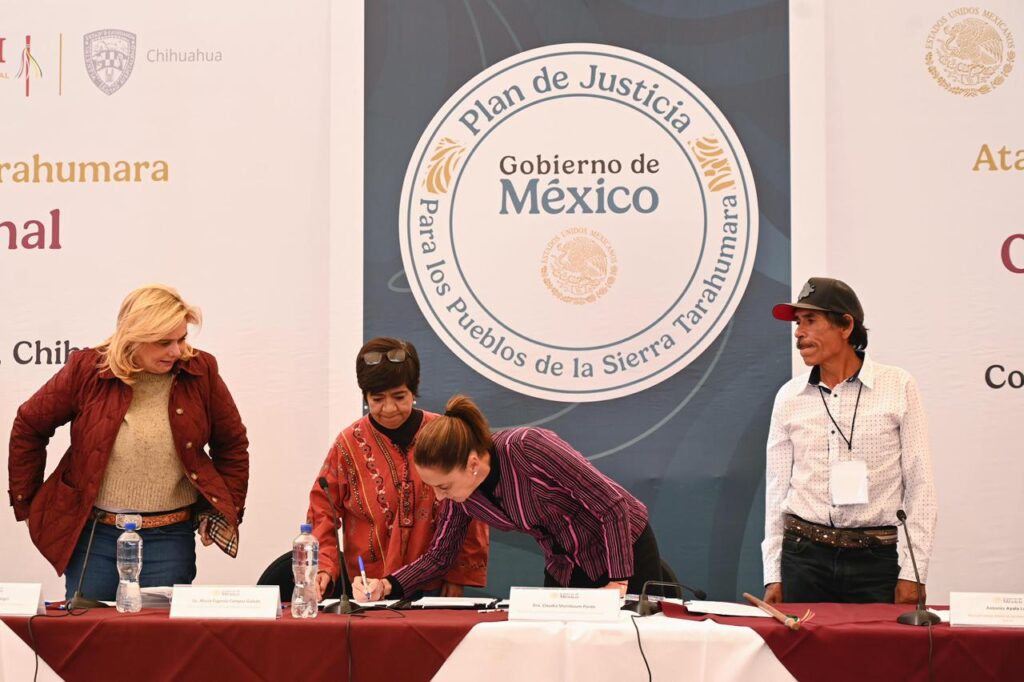 “Estamos una vez más aquí en la Sierra, ahora con el pueblo Ódami, para entregar tierra. Se trata de entregarles lo que siempre fue de ustedes, pero que no había sido reconocido: 3 mil hectáreas que se están entregando el día de hoy para que ustedes puedan reconocerse y hacer justicia en el territorio, justicia territorial. Esto es parte del Plan de Justicia de los pueblos de la Sierra Tarahumara”, informó.
