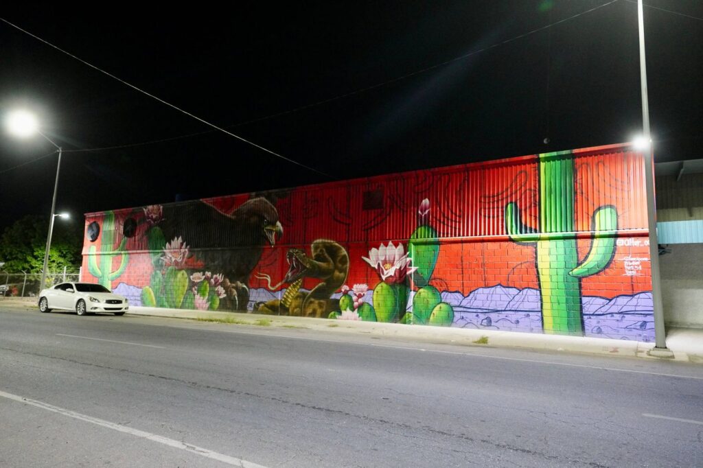 Entre las principales acciones realizadas destacan: sustitución de luminarias de sodio por tecnología LED de 150 y 100 watts para mejorar la visibilidad nocturna; instalación de postes de alumbrado público de distintas alturas, con 1,093 bases y 2,447 luminarias; colocación de bases de medición para su conexión con la Comisión Federal de Electricidad (CFE) e intervención artística con 10 murales que abarcan 1,200 metros cuadrados, representativos de la identidad regional.