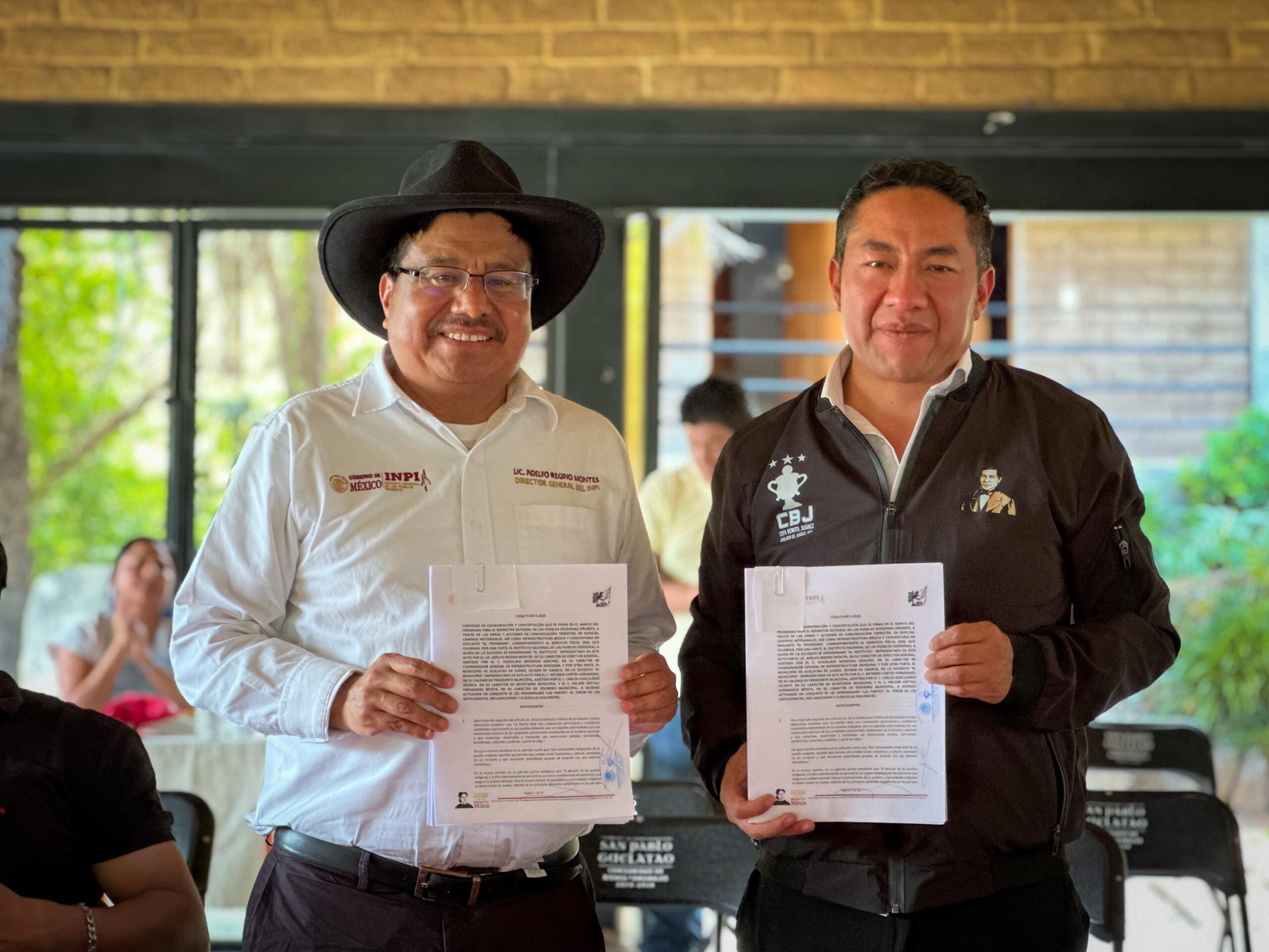 Guelatao de Juárez a 16 de marzo de 2026. Con el objetivo de seguir fortaleciendo la transferencia directa de recursos públicos hacia las comunidades indígenas y afromexicanas, autoridades municipales y comunales de la Sierra Juárez firmaron diversos convenios con el director general del Instituto Nacional de los Pueblos Indígenas ( INPI), Adelfo Regino Montes para la construcción de obras y acciones en el marco del Camino de Benito Juárez y de Miguel Méndez, con una inversión superior de 75 mdp.