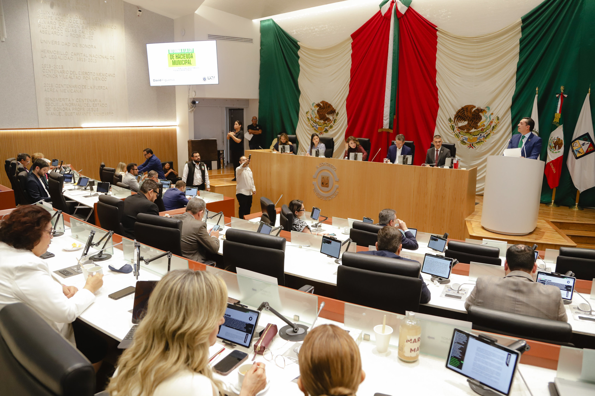 A nombre de la Rebeca Silva Gallardo (NAS), Emeterio Ochoa Bazúa (PRI) y Juan Pablo Arenivar Martínez (PAN), el diputado David Figueroa Ortega (PVEM) dio lectura a la iniciativa de reforma a la Ley de Hacienda Municipal para establecer reglas de transparencia y certeza jurídica en el otorgamiento de estímulos fiscales, a fin de evitar discrecionalidad, definir condiciones claras de acceso y obligar a su publicación en medios oficiales.