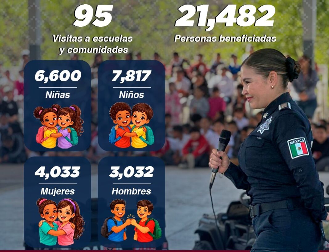 El trabajo preventivo que se ha realizado en este periodo incluye pláticas preventivas, dinámicas de valores, cultura de la paz, prevención de la violencia, acoso, uso responsable de la línea de denuncia anónima 089 y 9-1-1 de emergencias, entre otros temas de beneficio para la población sonorense.