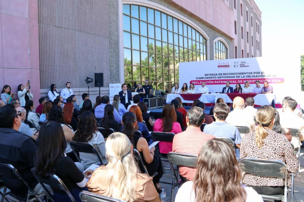 Hermosillo, Sonora; 7 de abril del 2026.– Como parte del compromiso del Gobierno de Sonora con la transparencia y la rendición de cuentas, la Secretaría Anticorrupción y Buen Gobierno (SABG) llevó a cabo la entrega de reconocimientos por el cumplimiento anticipado de la Declaración Patrimonial de Modificación 2026.