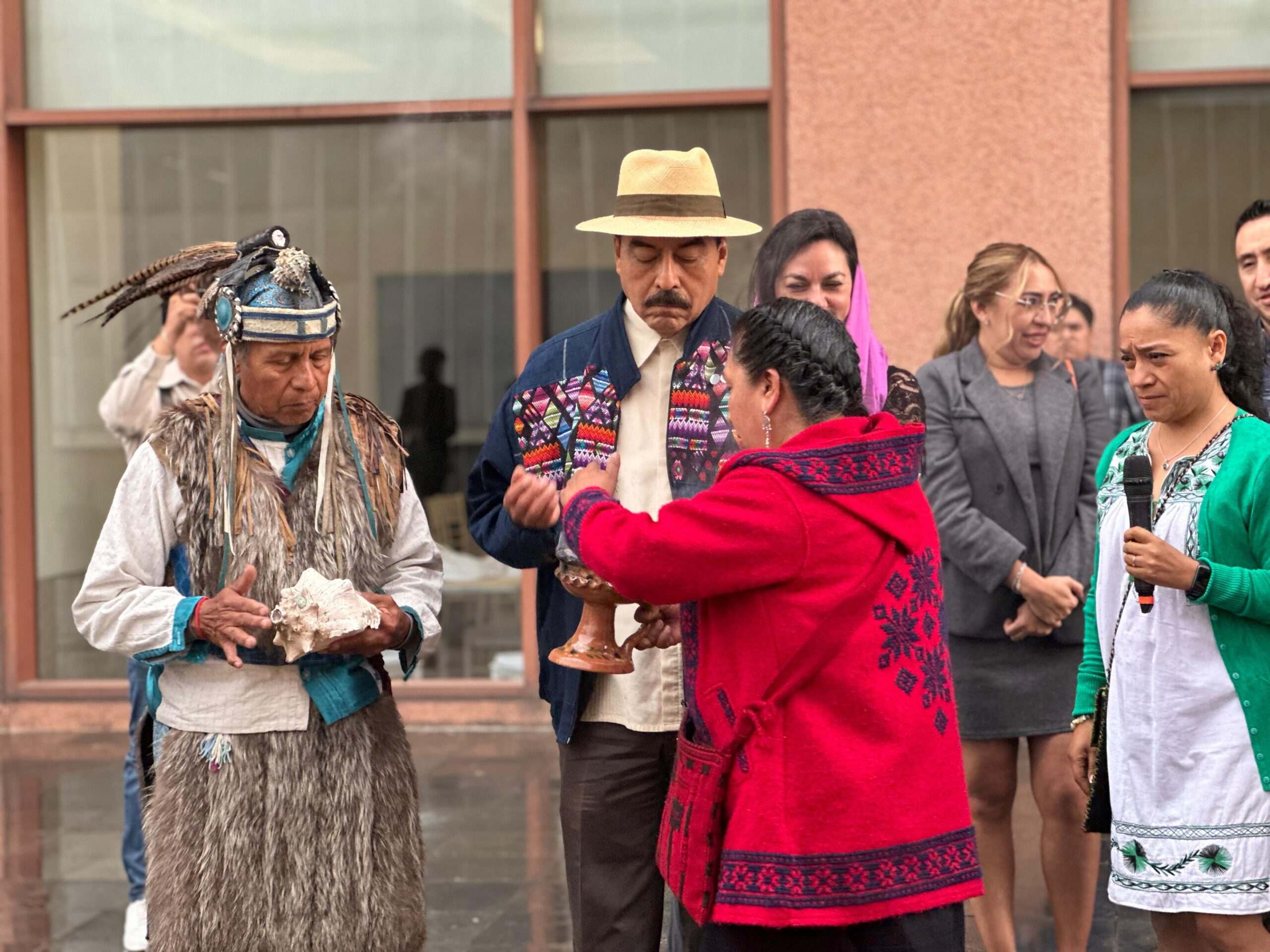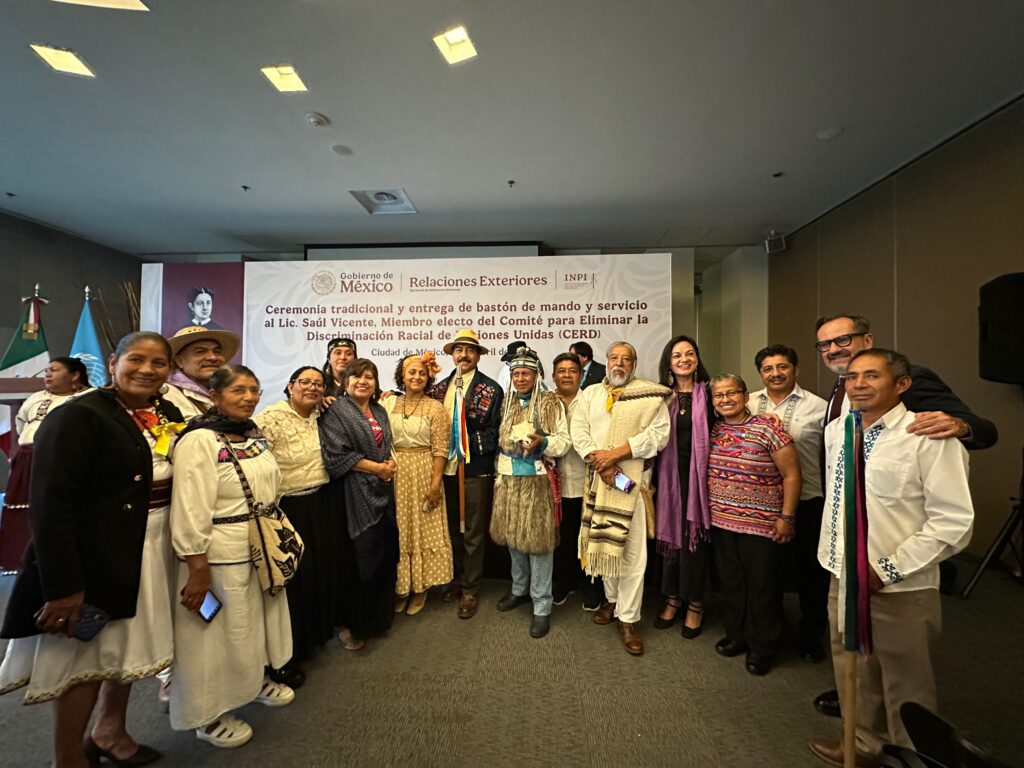 Ciudad de México, a 8 de abril de 2026. Con una emotiva ceremonia tradicional indígena, en la Secretaría de Relaciones Exteriores (SRE), se realizó la entrega del bastón de mando y de servicio a Saúl Vicente Vázquez, con motivo del inicio de su encargo como integrante del Comité para la Eliminación de la Discriminación Racial (CERD) de la Organización de las Naciones Unidas (ONU), para el periodo 2026–2030.